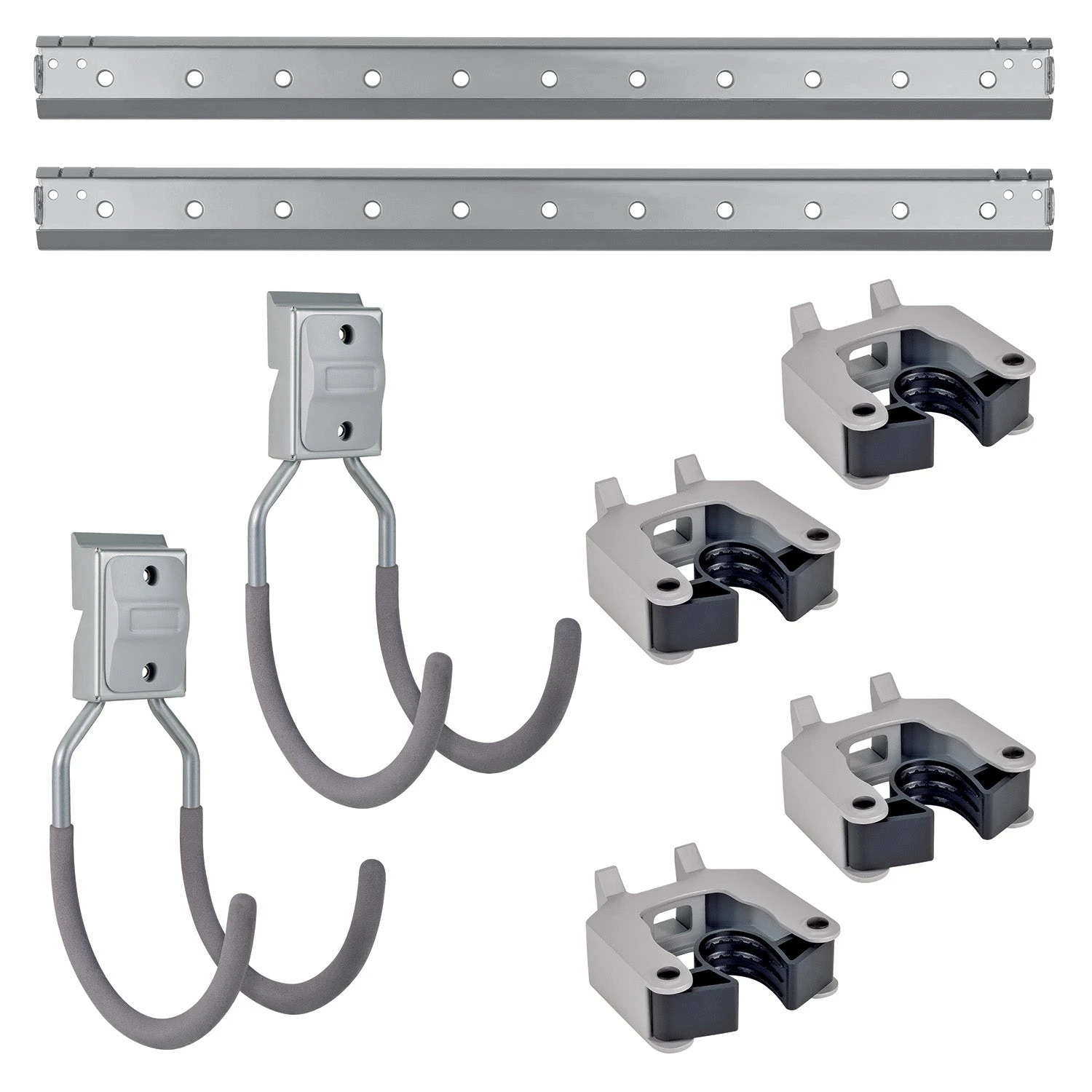 - Set includes 2 each 24 inch utility rails, 4 tool holders, 2 hose hooks, mounting hardware