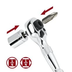 This Powerbuilt 1/2-inch Ratchet is designed to excel in even the tightest spaces where other ratchets won’t fit. With a super strong, 60-tooth ratchet mechanism and a comfortable dual-density handle, you’ll be looking for excuses to use this awesome ratchet. It’s constructed from tough chrome vanadium, which resists wear better than steel alone. The low-profile ratchet head is perfect for tight spaces. Quick release design lets change out sockets faster than conventional models. Powerbuilt tools are built with the performance, features, fit and finish to satisfy the most demanding users, and this ratchet is no exception. Powerbuilt tools and equipment meet or exceed US Government and ANSI standards.