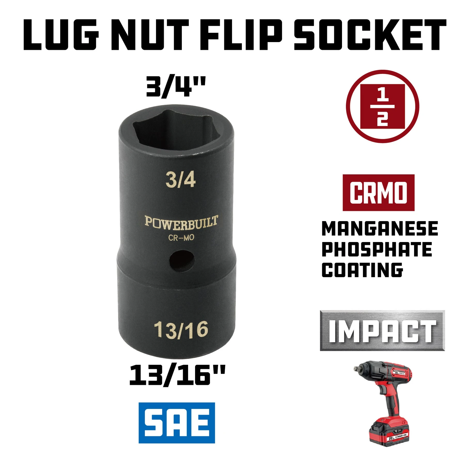 Talk about versatile! This stylish 1/2” drive impact flip socket fits 3/4″ and 13/16″ lug nuts.