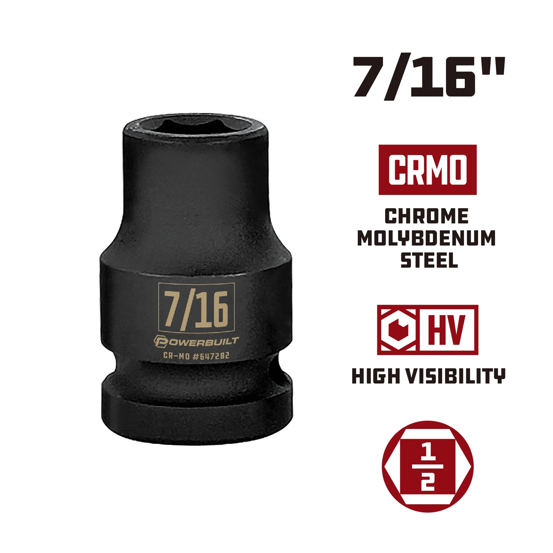 SIZE: 1/2 Inch Drive x 7/16 Inch 6 Point Impact Socket