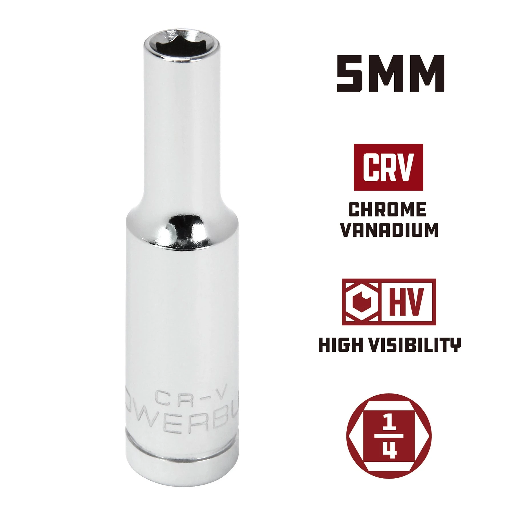 Powerbuilt Sockets are made from high grade Chrome Vanadium Steel and feature a mirror polished chrome plated finish for superior durability and corrosion resistance. Each Powerbuilt socket is cold forged, heat treated and produced with precision tolerances.