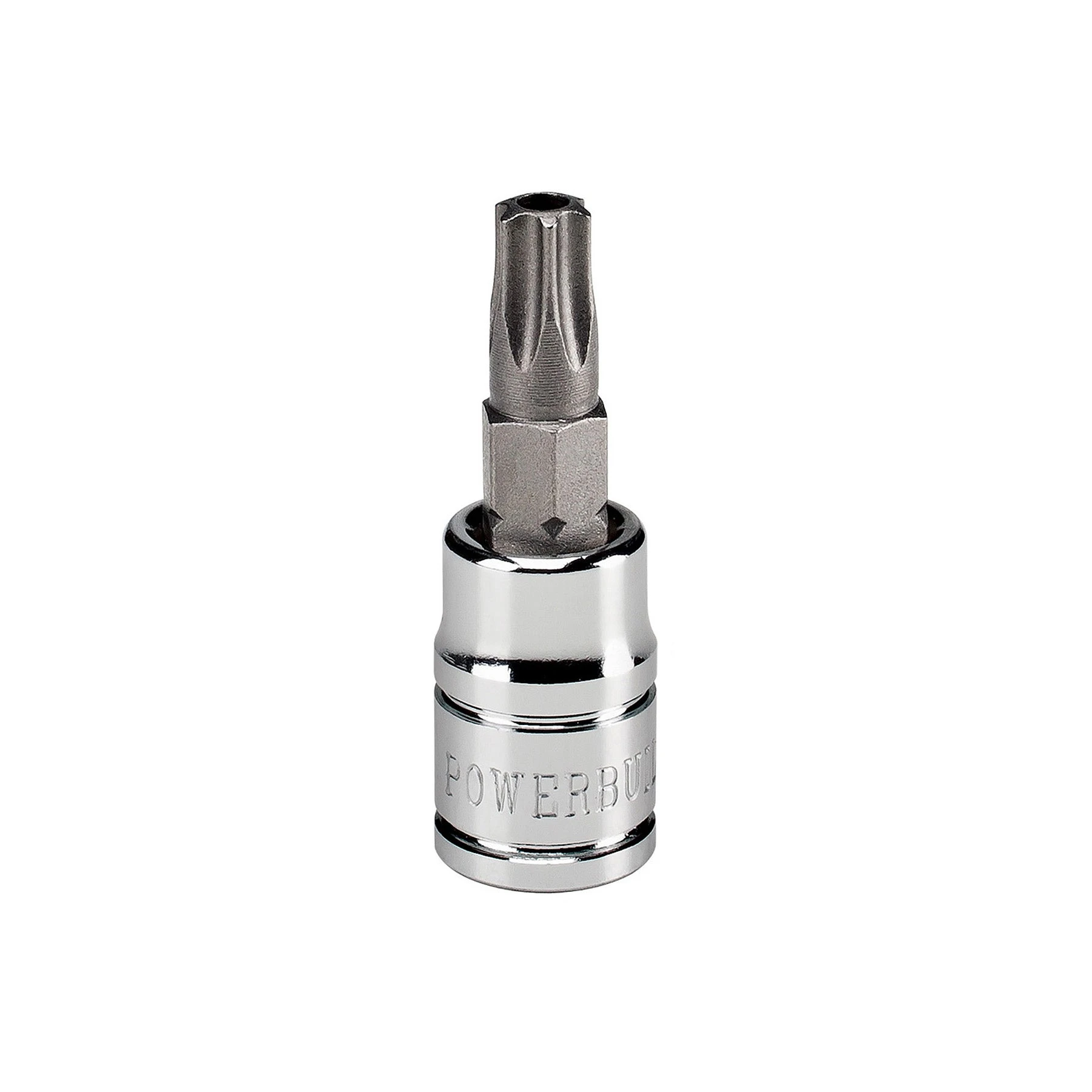 These tough Tamper Proof Star bit sockets are built for the toughest jobs. Powerbuilt 1/4 Inch Drive Tamper Proof Torx Bit Socket features a 2-piece press-fit design for strength and durability. Socket bodies are constructed of tough Chrome Vanadium Steel and mated to S-2 industrial-grade steel bits which ensure a lifetime of reliable use. The hardened S2 steel bits are precision ground for a tight fit onto Tamper-proof Torx fasteners. The bit’s Zinc Phosphate coating allows for a protective non-slip function preventing bolts from striping. High visibility sizing is stamped into the mirror-polished Chrome Vanadium sockets.