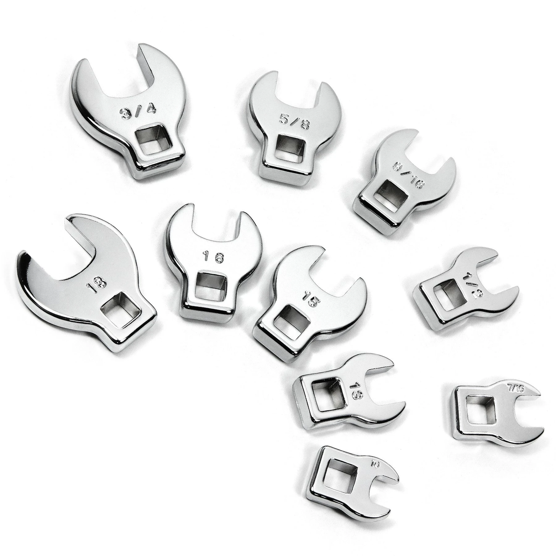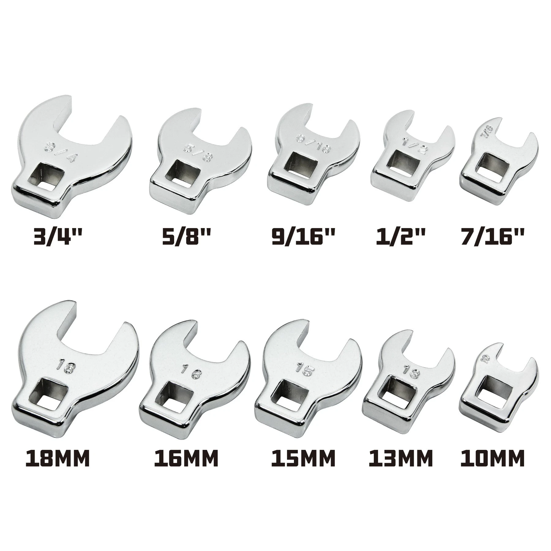 SPACE SAVING WRENCH SET: Convert any 3/8 inch ratchet or bar into 10 different open-end wrenches with this crowfoot wrench set; sizes include SAE and Metric wrenches