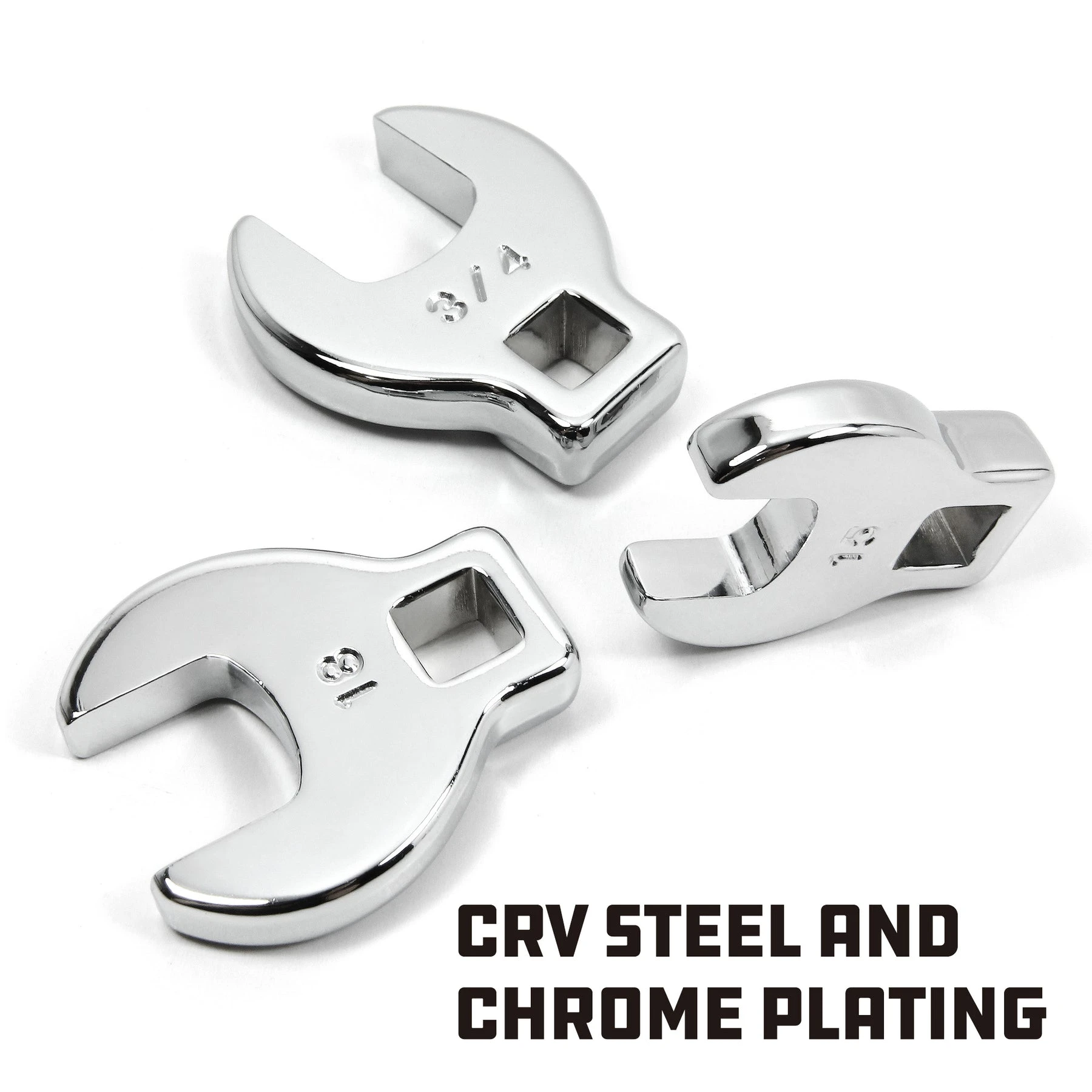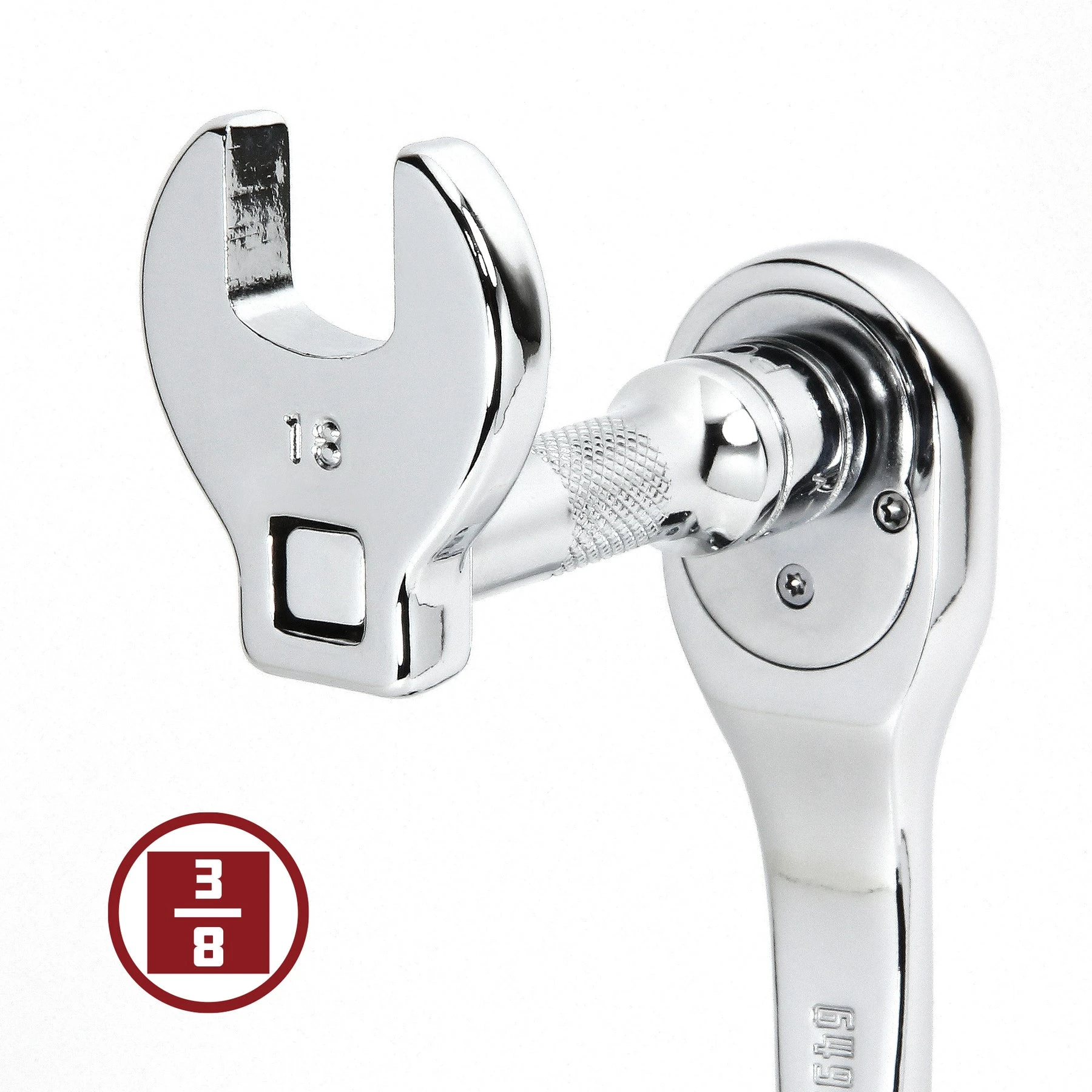 WORK FASTER AND EASIER: Crowfoot wrench set turns any 3/8 inch ratchet into an open ended ratcheting wrench; no need to remove and reseat the wrench between turns