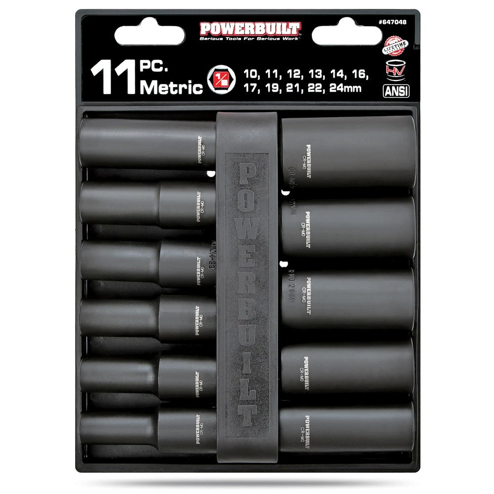 Powerbuilt 11 Piece 1/2 In. Dr. Metric Deep Impact Socket Set