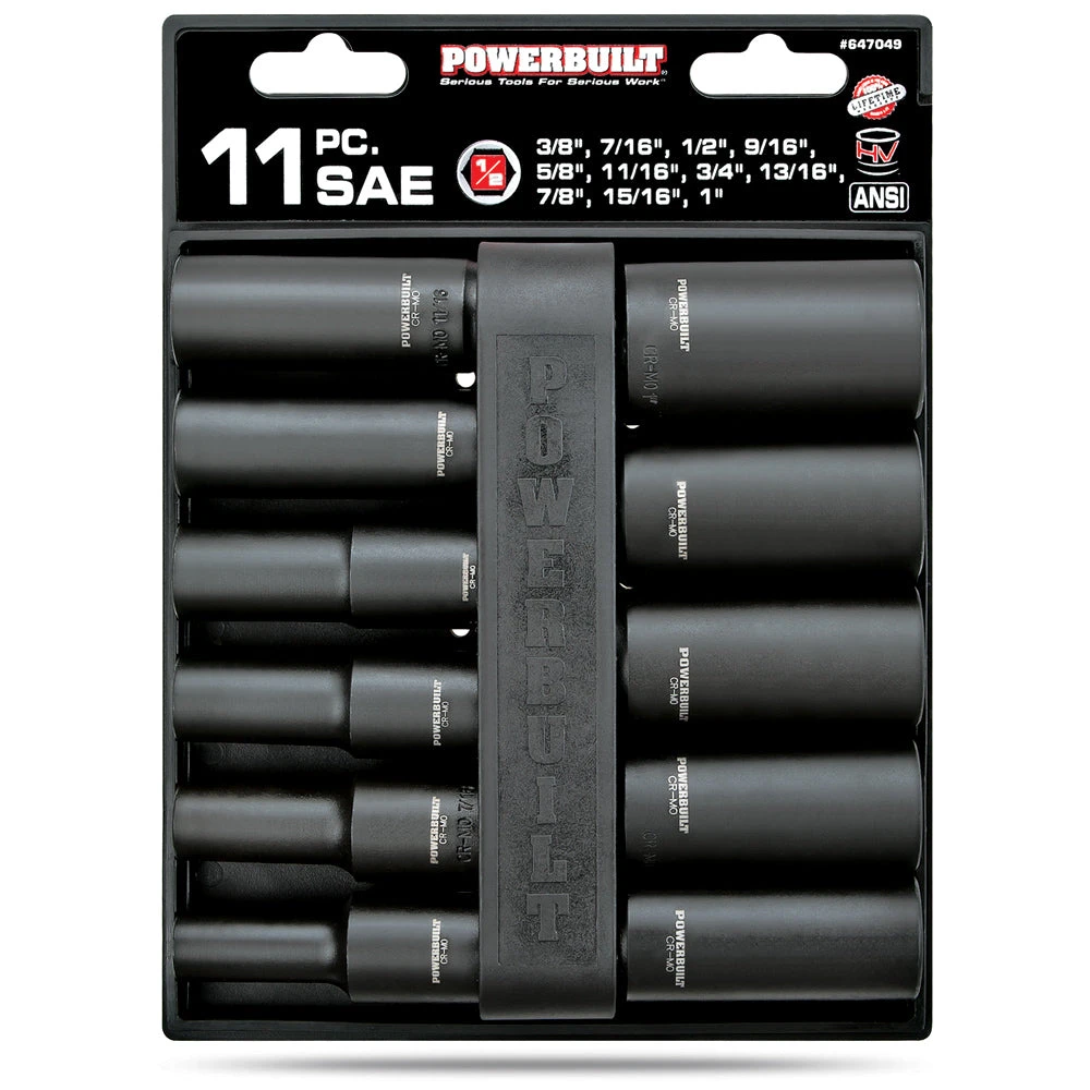 Powerbuilt 11 Piece 1/2 In. Dr. SAE Deep Impact Socket Set