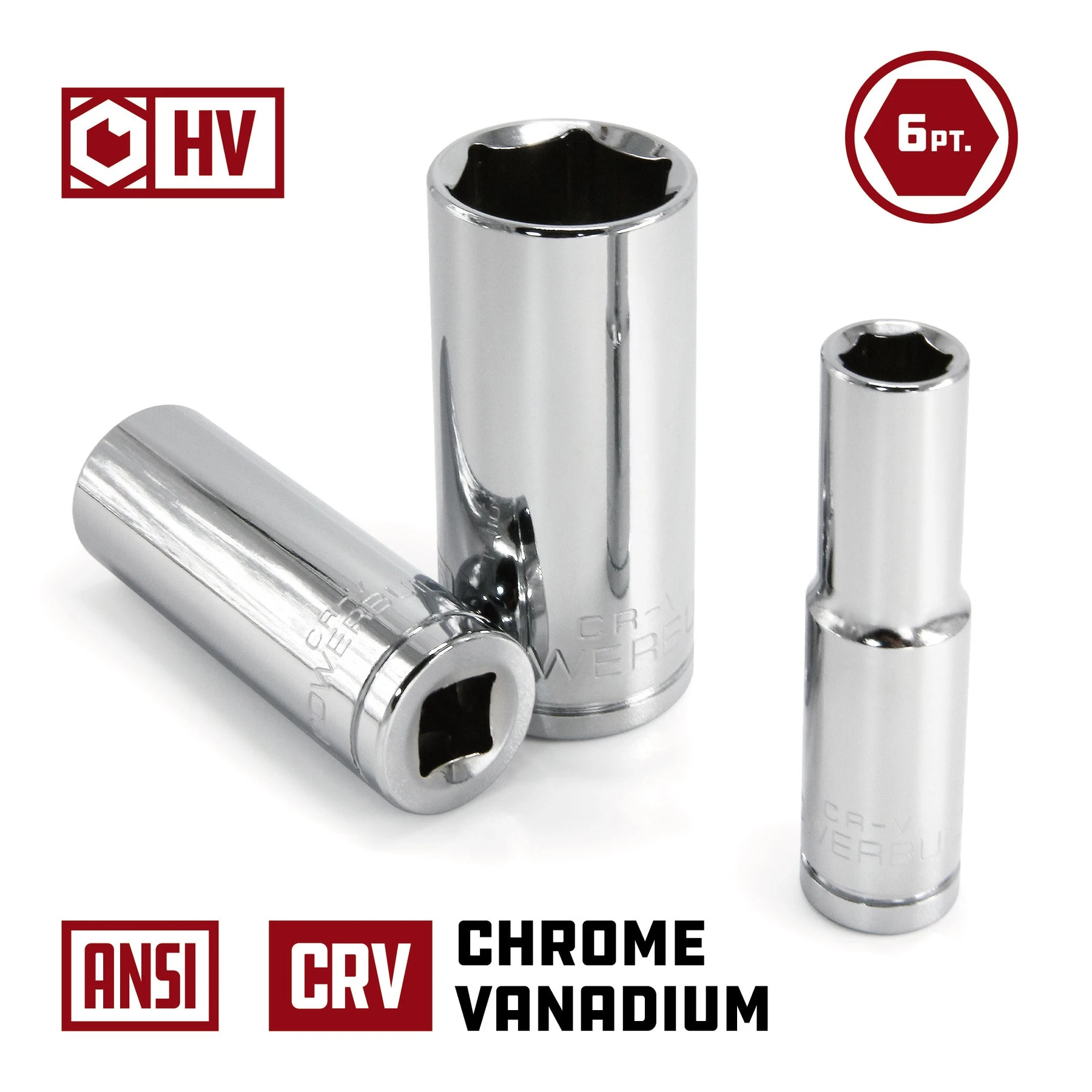 Powerbuilt Sockets are made from high grade Chrome Vanadium Steel and feature a mirror polished chrome plated finish for superior durability and corrosion resistance. Each Powerbuilt socket is cold forged, heat treated and produced with precision tolerances.