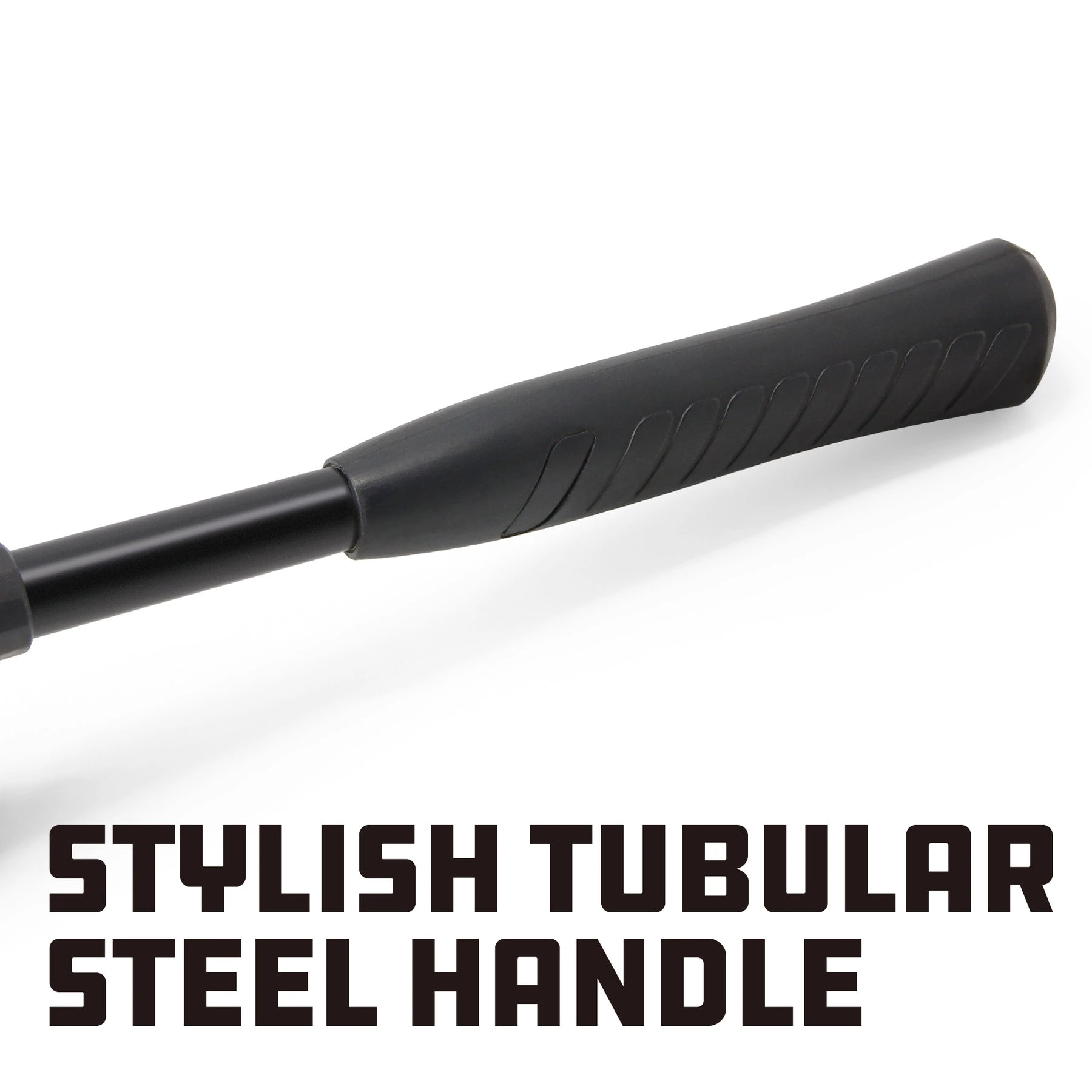 SECURE GRIP: Stylish tubular steel handle with comfortable rubber sleeve prevents slipping