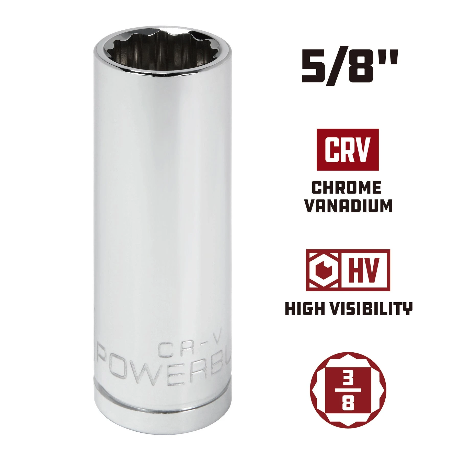 - Powerbuilt chrome sockets feature HV high visibility size markings that are three times larger for easy size selection.