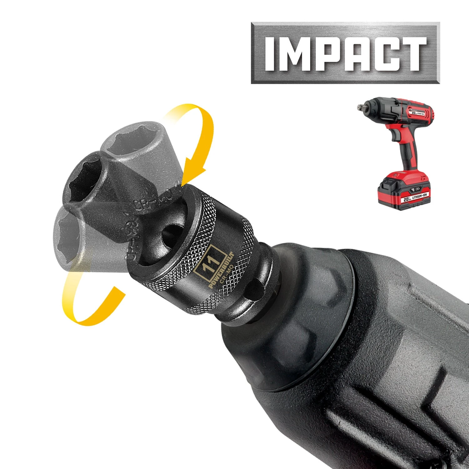 - Powerbuilt chrome sockets feature HV high visibility size markings that are three times larger for easy size selection.