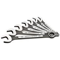 The Powerbuilt 7 Piece Metric Universal Splined Combination Wrench Set is a universal box end design fits six types of fasteners saving time and storage space. The splined broach grips and turns damaged and rounded nuts and bolts. Made of strong chrome vanadium steel with a black phosphate finish.