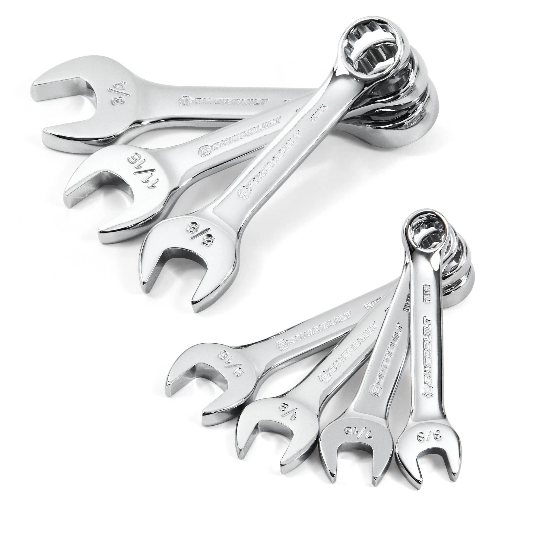 Made from the highest quality Chrome Vanadium steel material with a chrome-plated mirror-polished finish, the 12 Point Z-Drive broaching on the box end allows for more torque when breaking loose or finishing off any fastener. The stubby handles along with the 15° offset allows for greater access to those hard to reach areas. These wrenches are suitable for any professional technician or tool enthusiast