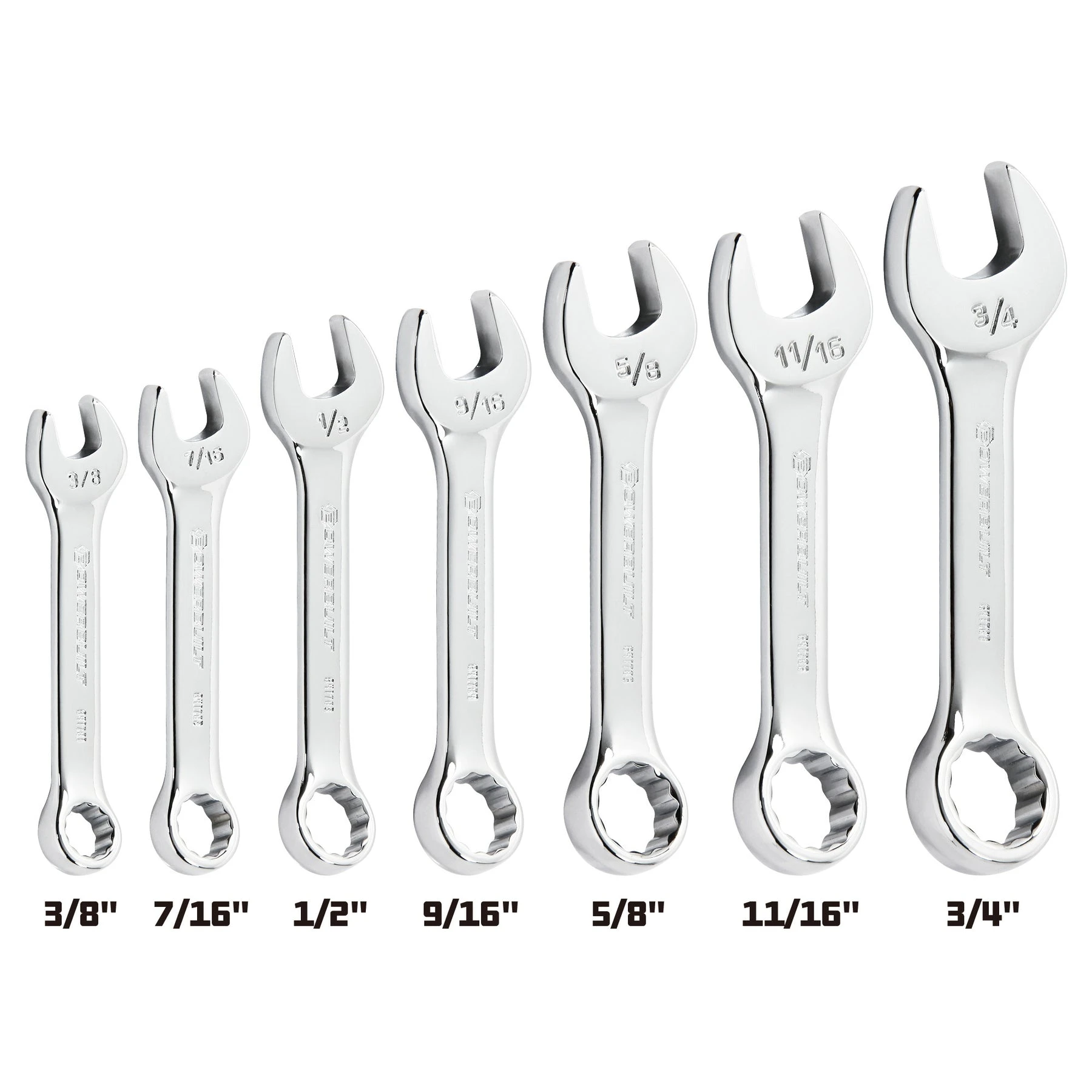 Powerbuilt 7 Piece SAE Stubby Combination Wrench Set