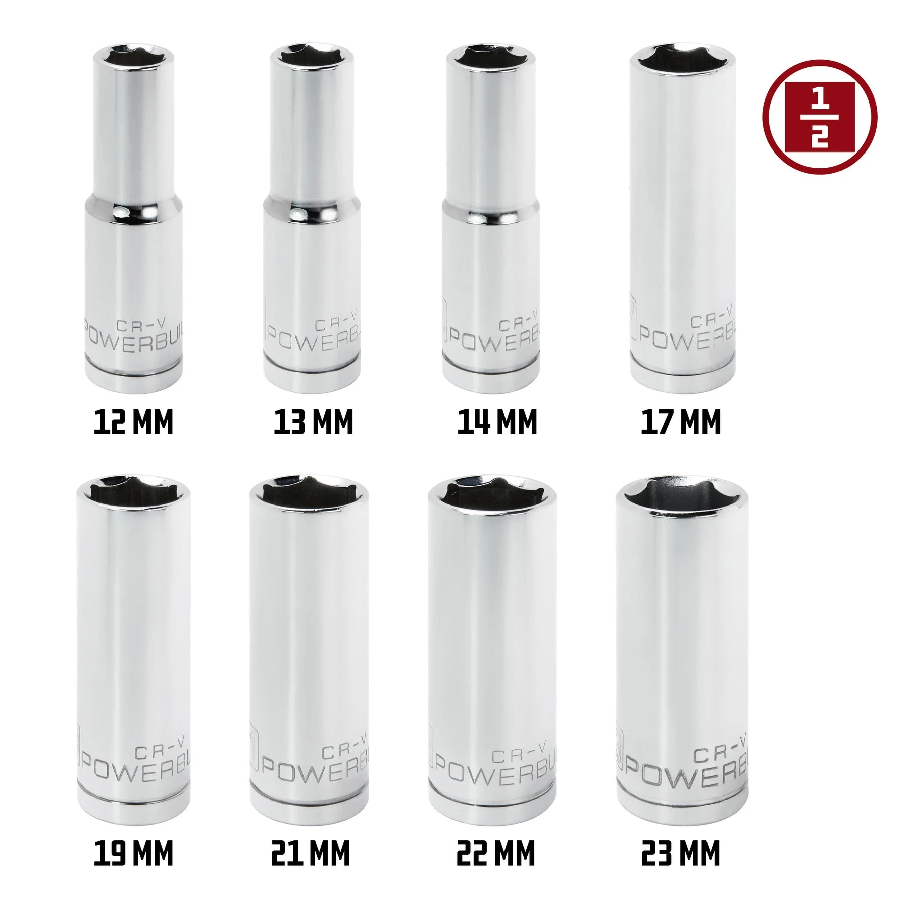 Powerbuilt 8 Piece 1/2 In. Dr. Metric Deep Socket Set
