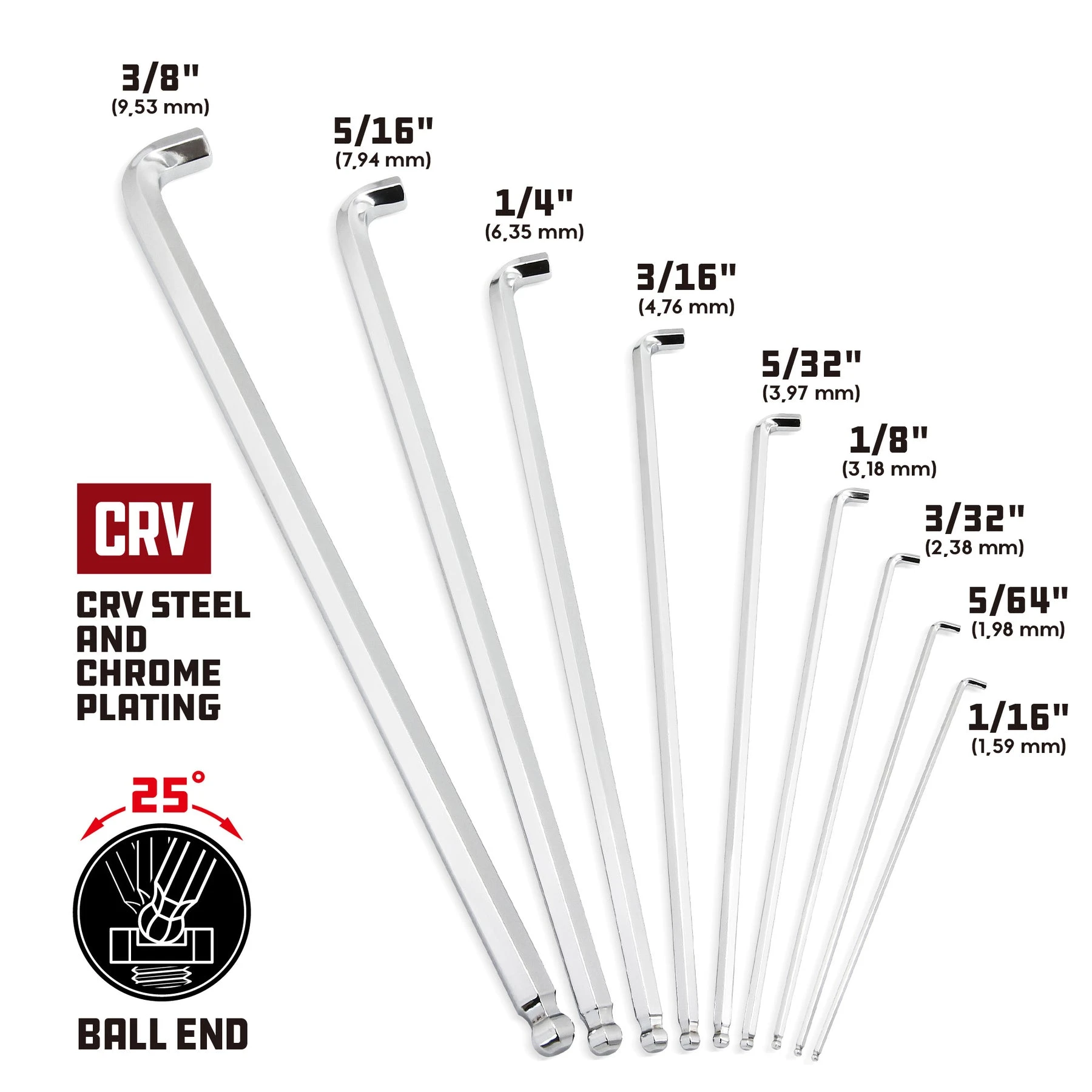 WORKS ALL THE ANGLES: Ball ends on the long arm ends turn those fasteners at angles up to 25 degrees