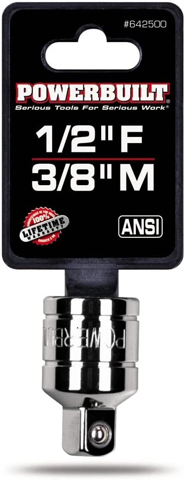 Sometimes you have a socket that fits the fastener, but doesn’t fit your ratchet. Powerbuilt socket adapters are the answer, mating your ratchet to a socket just like that. And don’t think these socket adapters are the weakest link. Built using strong chrome vanadium steel, these stylish adapters can do the job and look good doing it. Precision fit to securely hold sockets and eliminate slop. Dependable Powerbuilt socket adapters meet or exceed ANSI standards and have a lifetime warranty, all at affordable prices.