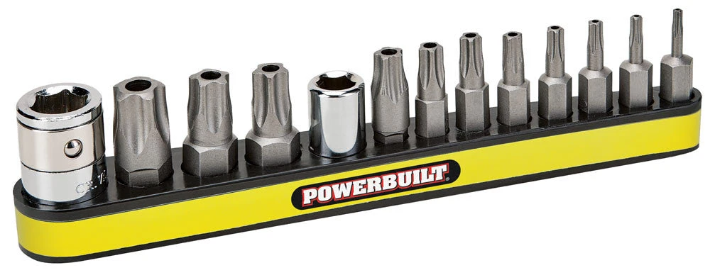 - Includes T-8, T-10, T-15, T-20, T-25, T-27, T-30, T-40, T-45, T-50 and T-55 chromoly tamper-proof 5 lobe Torx bits